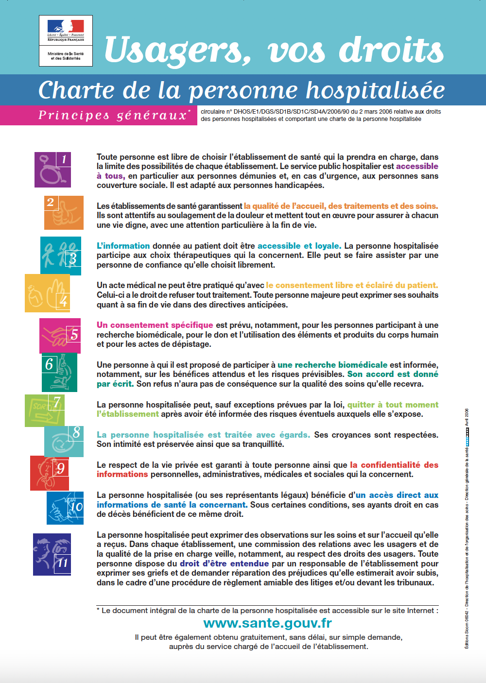 Le personnel hospitalier respecte les précautions d’hygiène afin de réduire au mieux le risque infectieux, cependant votre collaboration et celles de vos proches sont également importantes. Nous vous invitons à :